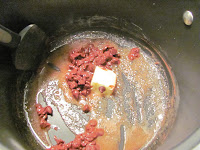 1. Melt the butter in a large saucepan on medium low heat. Once the butter is melted, add 1 cup of semi-sweet chocolate chips to the saucepan to melt.